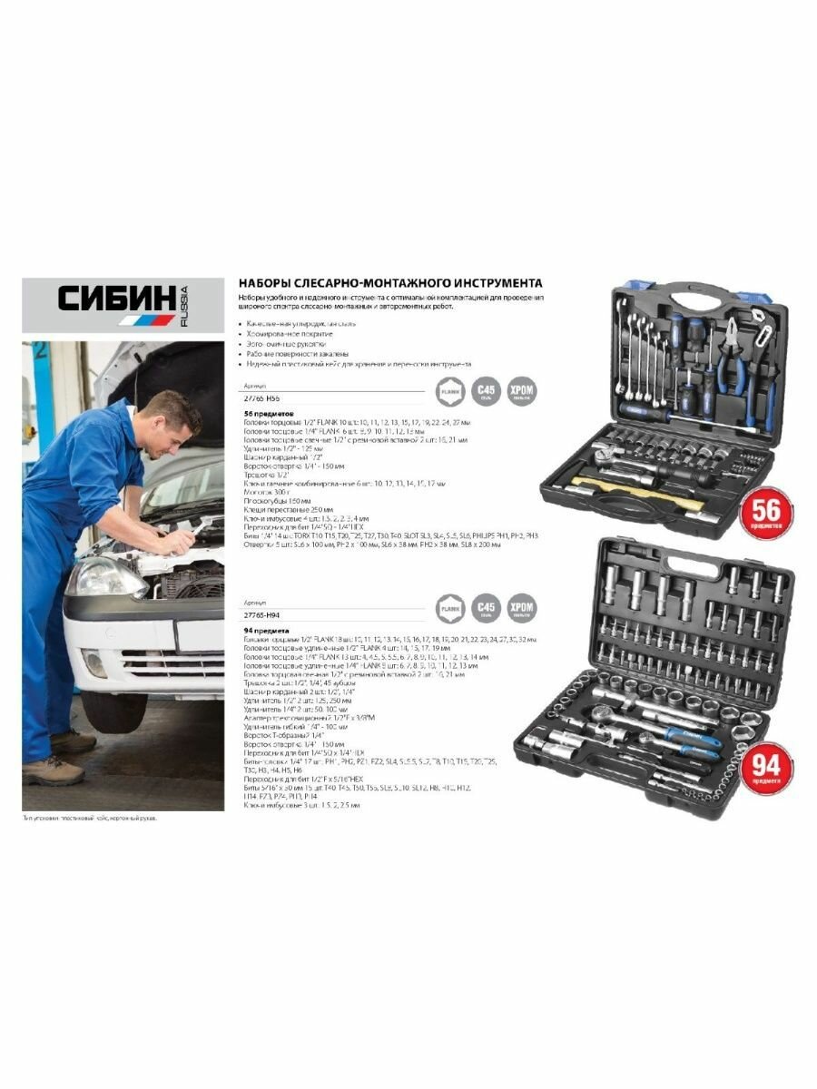 Ниже Вы можете прочитать отзывы на Набор автомобильных инструментов СИБИН 27765-H94, 94 предм., ознакомится с подробными характеристиками, посмотреть интересные обзоры и фотографии на Набор автомобильных инструментов СИБИН 27765-H94, 94 предм..