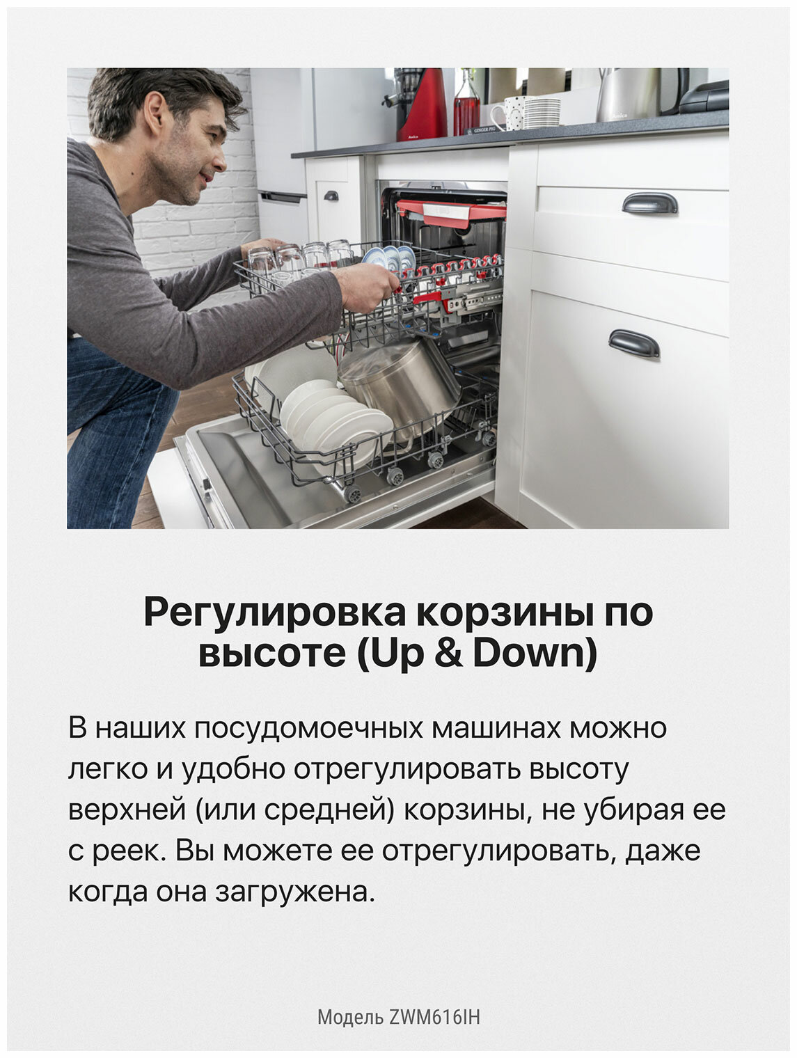 | Особенности конструкции | регулируемая по высоте корзина для посуды / внутренняя поверхность из нержавеющей стали |