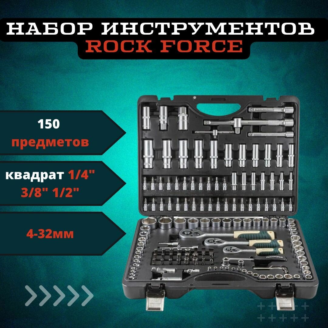 Набор инструментов ROCK FORCE RF-41501-5 1/2", 1/4", 3/8"DR с 6-гранными головками, 150 предметов