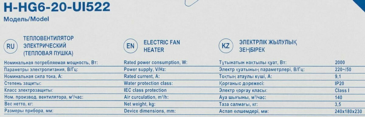Тепловая пушка электрическая Hyundai H-HG6-20-UI522 синий интересное: