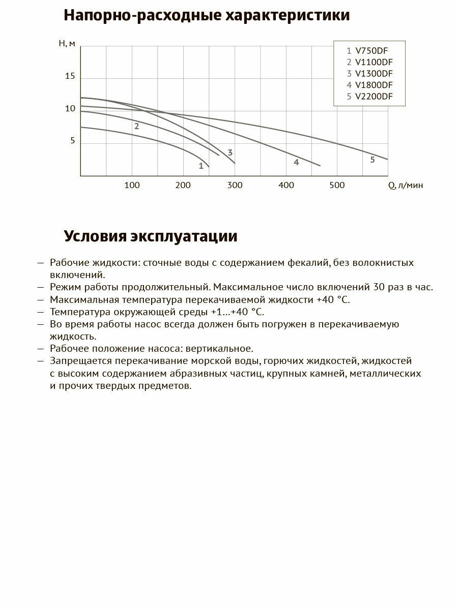 | Максимальный напор | 7 м |
