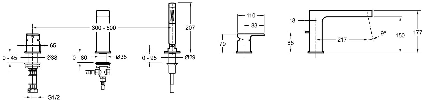 Смеситель Jacob Delafon STRAYT на борт ванны, на три отверстия E37337-CP