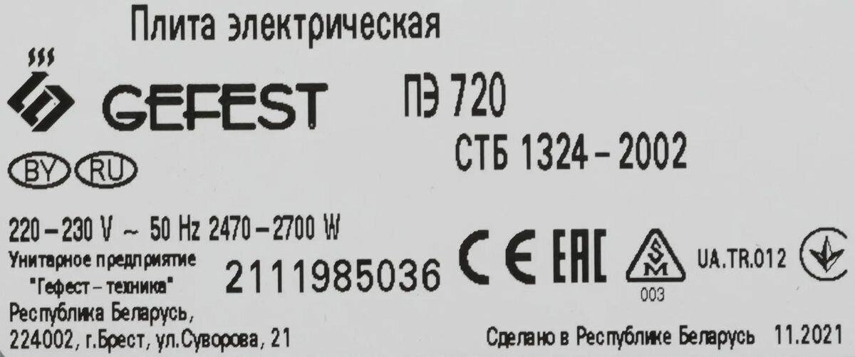 Купить Плита Электрическая Gefest ПЭ 720 белый