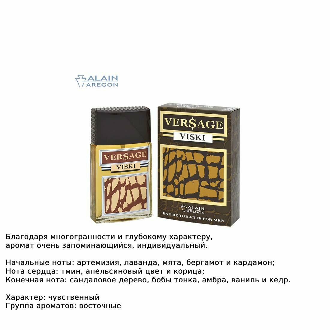 Alain Aregon / VERSAGE VISKI 100 мл / Версаж виски / мужской парфюм / мужская туалетная вода