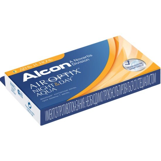 Контактные линзы ALCON, Air Optix Night & Day Aqua, ежемесячные +6,00/ 13,8/ 8,4, 3 шт.