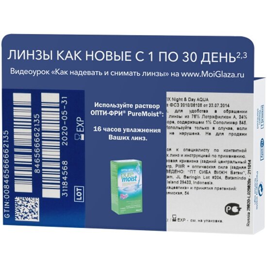 Контактные линзы Air Optix Night & Day Aqua 8.4 +4.5