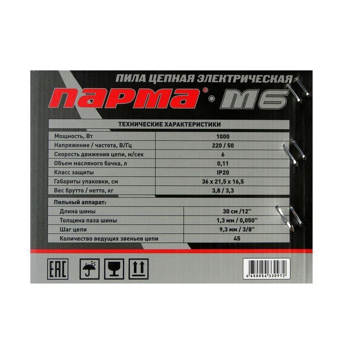 Цепная пила Парма Электрическая М 6 Парма 1000Вт 12'' (303 L 9 A VG-9-1 3-45) (4 шт/кор) 02.005.00008