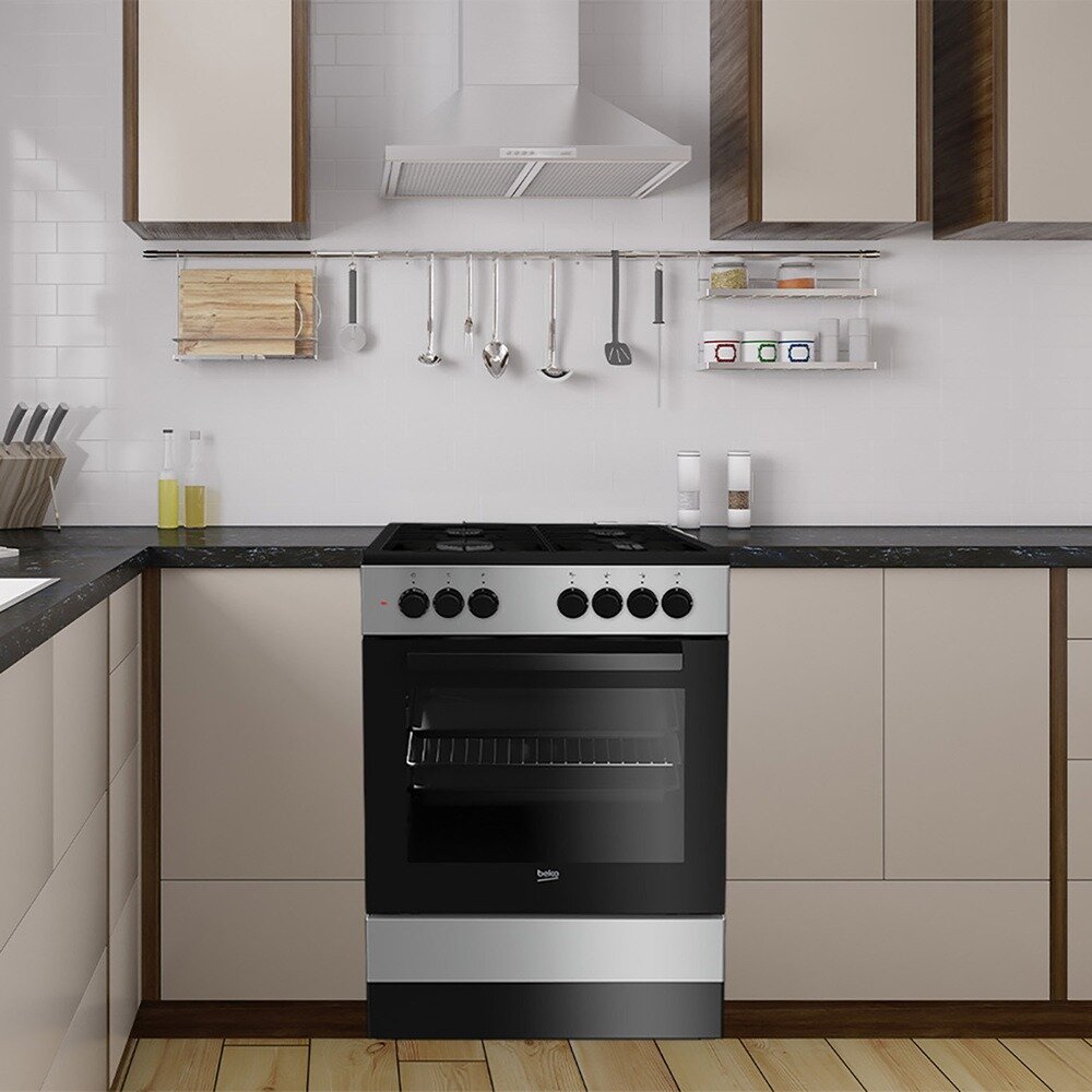Газовая плита Beko FSM62120DS, электрическая духовка, стеклянная крышка, сталь, серебристый [7786188614]