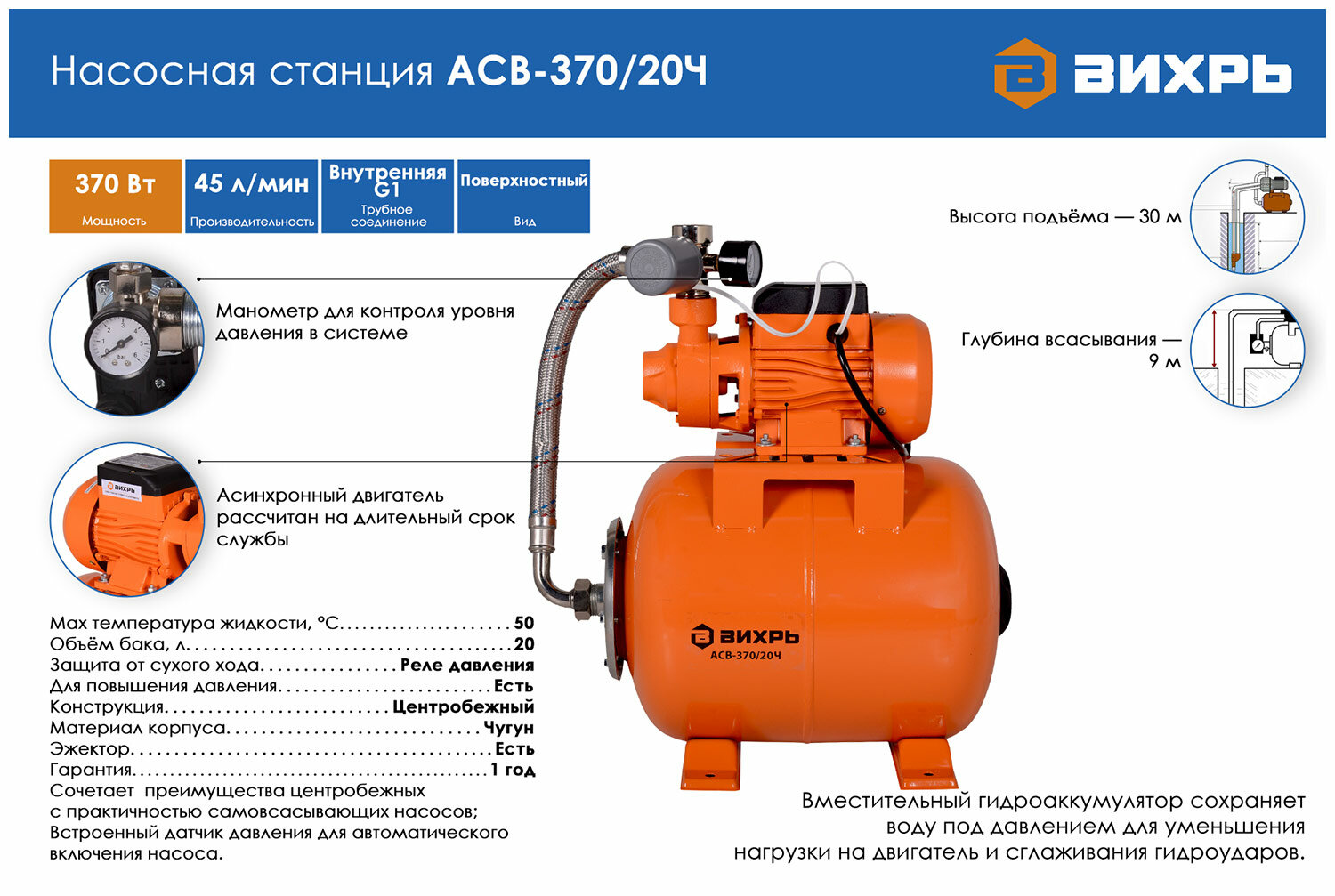 Насос Вихрь АСВ-370/20Ч интересное: