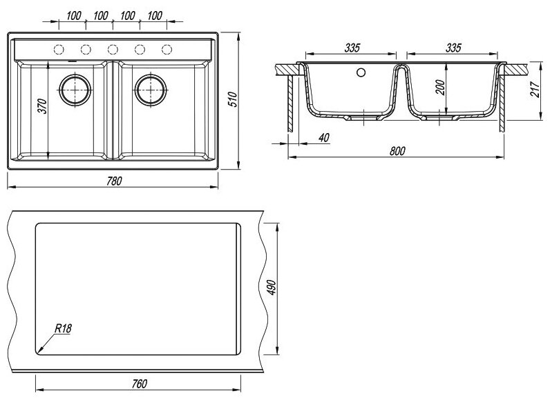 мойка DR.GANS Астра 780 780х510х217мм черный