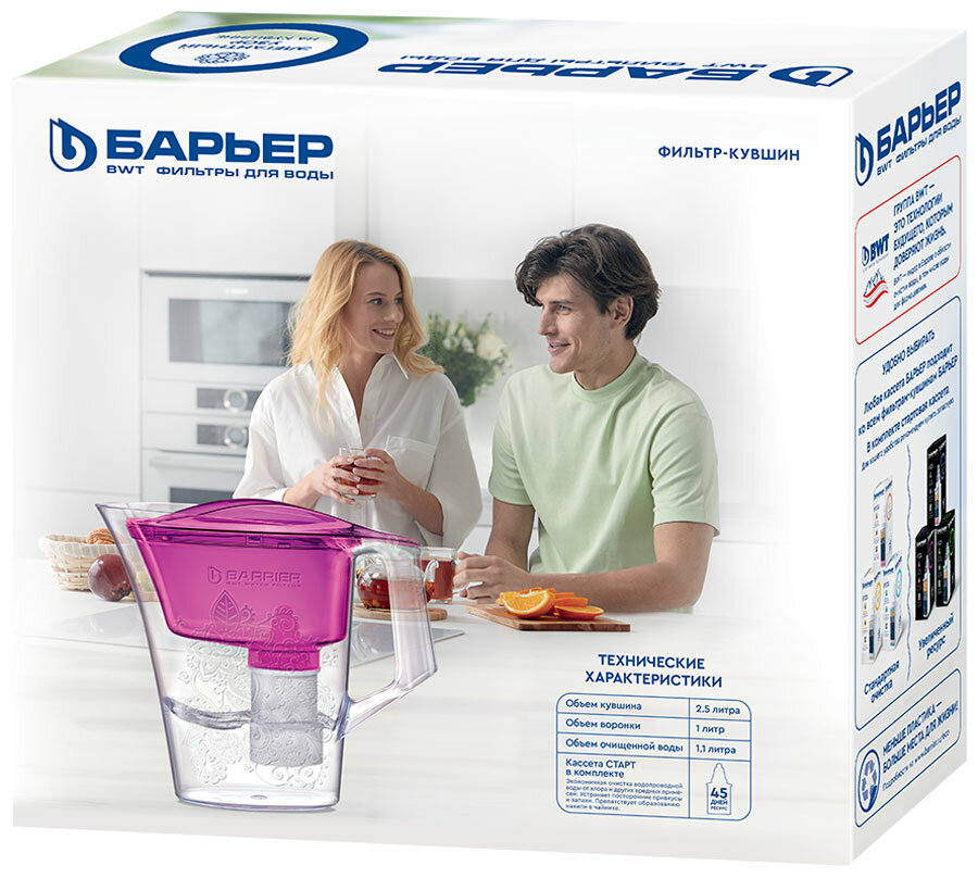 Фильтр кувшин для воды 2.5Л узкий С рисунком танго пурп БАРЬЕР