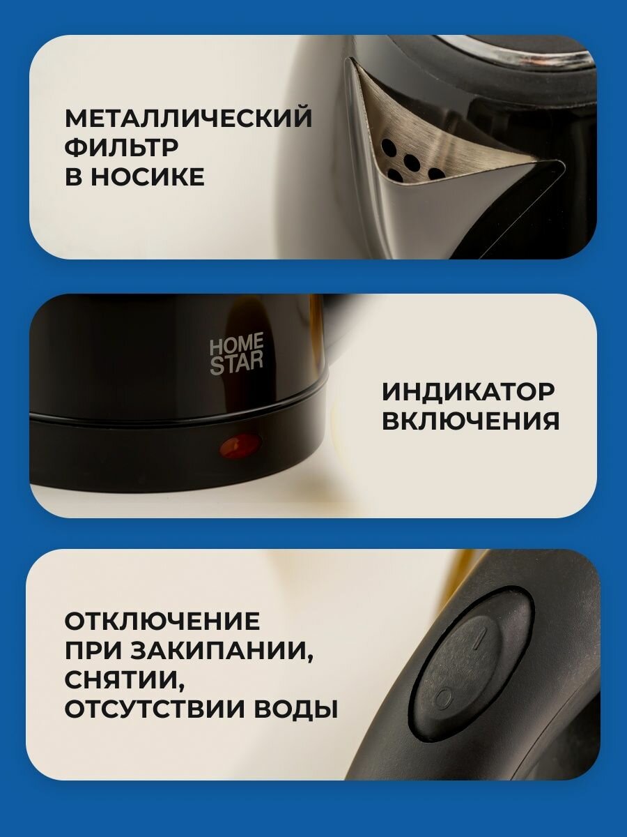 чайник HOMESTAR HS-1010 1500Вт, 1,8л сталь черный