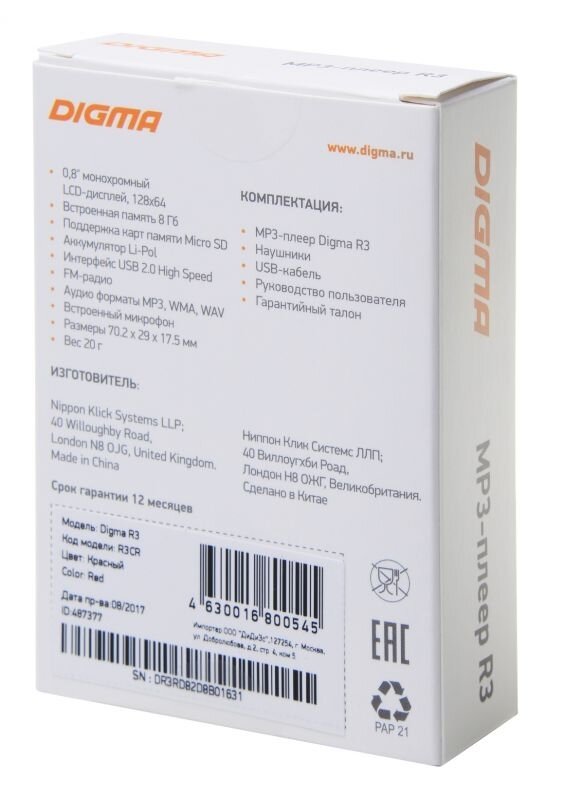Плеер Flash Digma R3 8Gb красный/0.8"/FM/microSDHC/clip интересное: