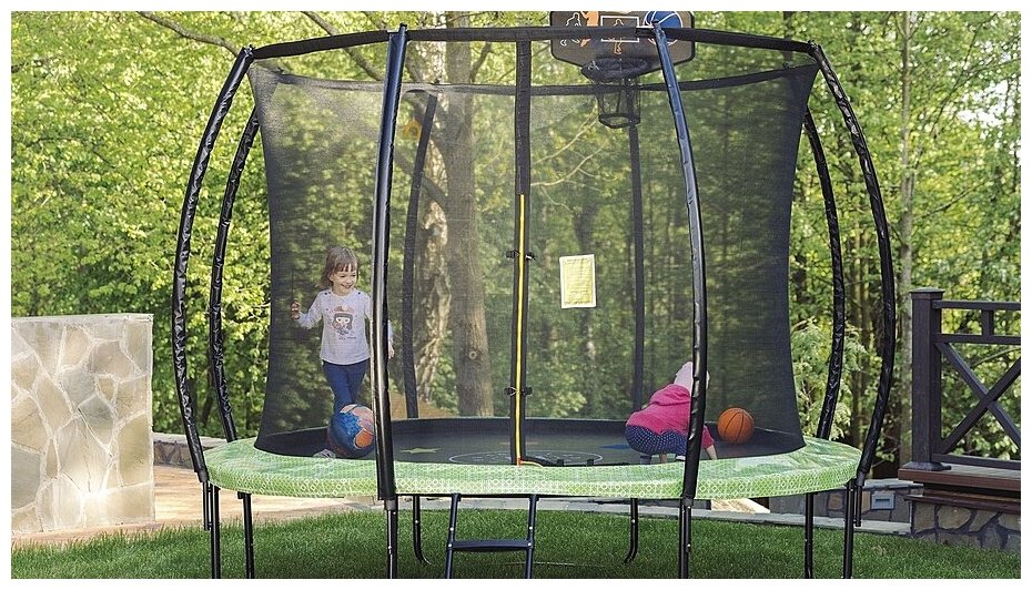 | Отзыв: | Внешне приятный глазу игровой батут. Материалы приятные на ощупь, изготовлены качественно. Чехлы на стойки прошиты аккуратно, ниточка к ниточке и ни где не торчком. В комплекте есть нижняя защитная сетка, а еще отличный набор для баскетбола, сделан качественно.
