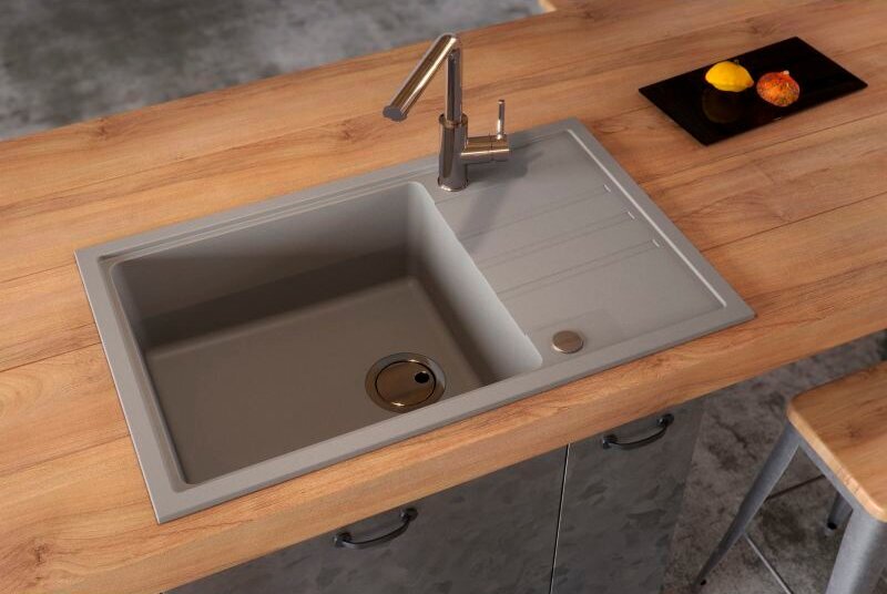 Раковина для кухни врезная каменная Alveus Granital Atrox 40 TERRA - G22 790 X 500 / кухонная мойка накладная из искусственного камня, гранит, бежевый