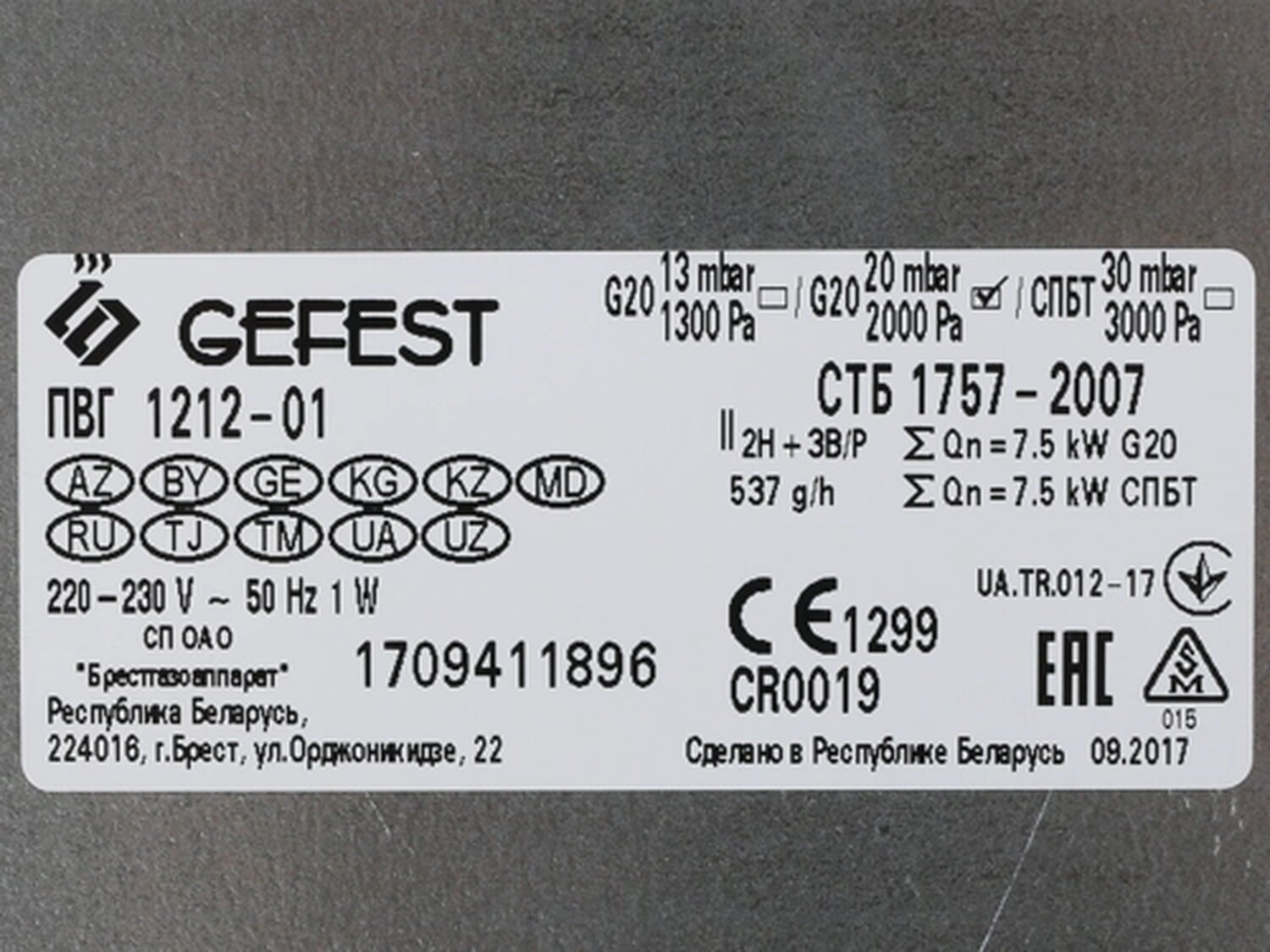 Купить Встраиваемая газовая варочная панель Gefest ПВГ 1212-01