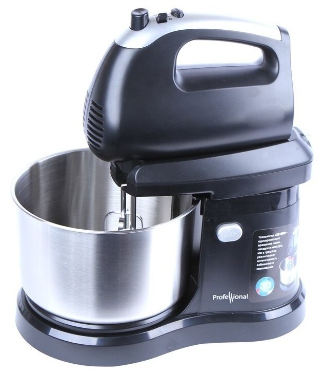 | Минусы: | Навороченная чаша - фигня. Миксер не достаёт до дна, а так как у чаши дно плоское, а не сферическое, то для взбивания в стационарном режиме надо очень много продуктов. 5 яиц будет мало, например. |
