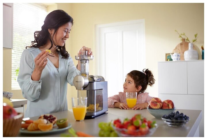 | Отзыв: | Давно хотела соковыжималку, остановилась именно на шнековой от Филипс, потому, что убедилась в производителе не однократно. Соки получаются просто восхитительные, можно делать с мякотью или без. Всё содержимое выливается в кувшин за счет «риверсивной способности», когда разбираю соковыжималку понимаю, весь сок выливается в стакан до последней капли.