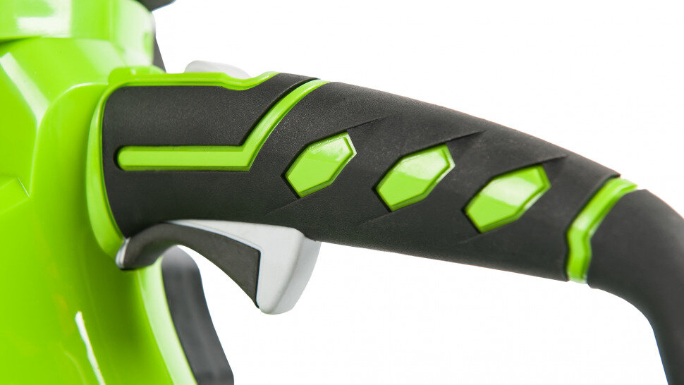 | Минусы: | Нет классического экрана "тормоза цепи по обратному удару", но это бы привело к удорожанию и увеличению веса. Если без этой функции вам никак, она есть на 40-вольтовых моделях ГВ. |