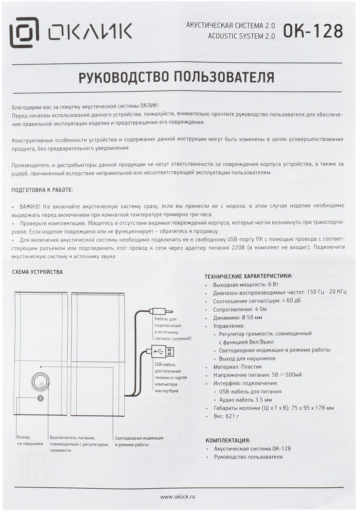 Колонки Оклик OK-128 2.0 черный 6Вт интересное: