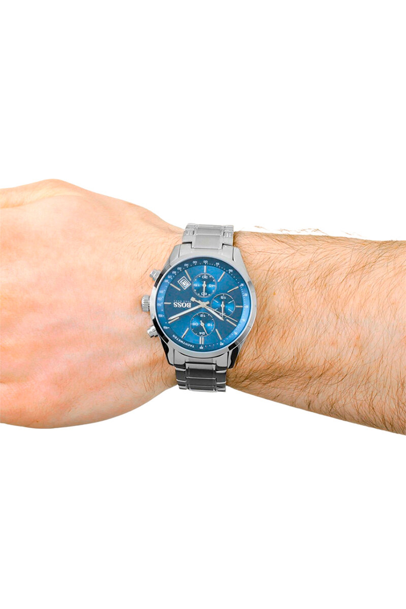 Наручные часы BOSS мужские HB1513478 кварцевые, хронограф, тахиметр, секундомер, подсветка стрелок, водонепроницаемыесеребряный