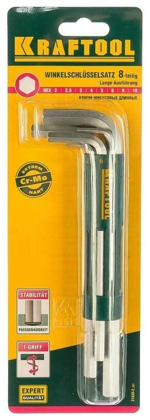 Kraftool Набор 27430-2 z01 Ключи "EXPERT" имбусовые длинные, Cr-Mo сталь, держатель-рукоятка, HEX 2-10мм, 8 пред