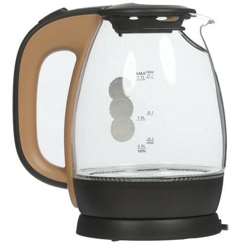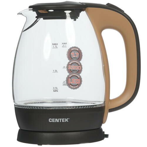 Стеклянный чайник электрический Centek CT-0056, 1,7 л, пластик бежевый/кофе