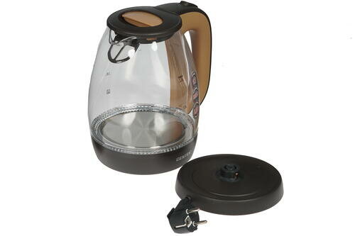 Чайник Centek CT-0056 стекло (бежевый+кофе), 1.7л, 2200Вт, LED-подсветка, боросиликатное стекло