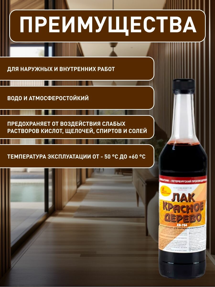 Лак Новбытхим для Дерева ХВ-784 0.5л Красное Дерево для Внутренних и Наружных Работ.
