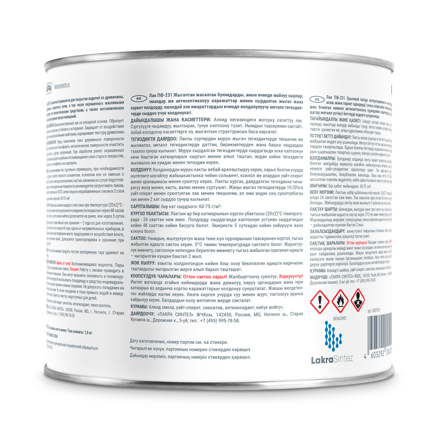 Лак ПФ-231 паркетный Лакра 1,8кг Л-С