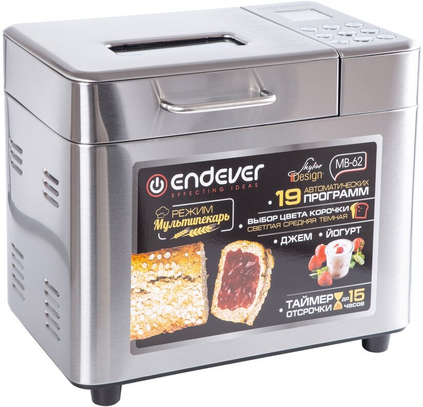 Ниже Вы можете прочитать отзывы на Хлебопечка Endever Skyline MB-62 / 19 автоматических программ / Мультипекарь / выпечка 500/750/1000 грамм / таймер, автоподогрев, пауза, ознакомится с подробными характеристиками, посмотреть интересные обзоры и фотографии на Хлебопечка Endever Skyline MB-62 / 19 автоматических программ / Мультипекарь / выпечка 500/750/1000 грамм / таймер, автоподогрев, пауза.