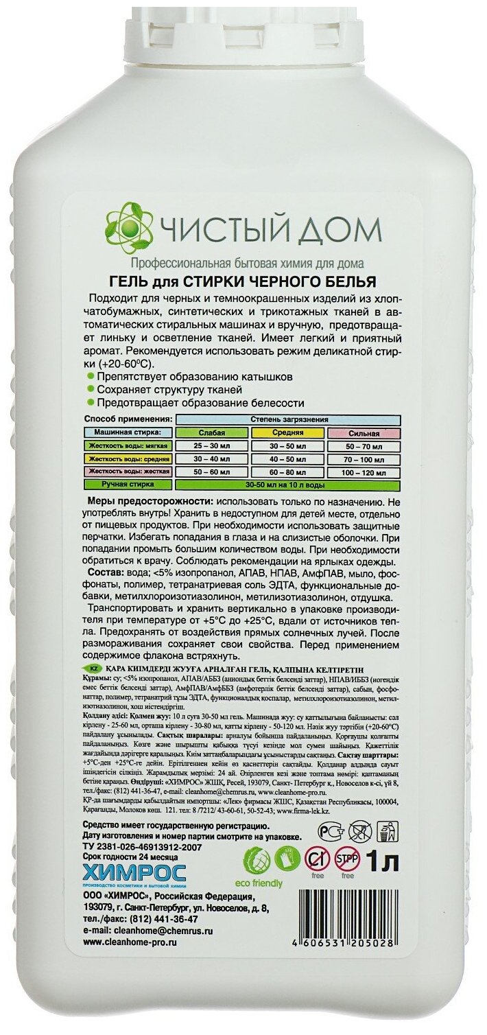 Гель для стирки CLEAN HOME черного белья сохраняющий цвет 1л 4606531205028