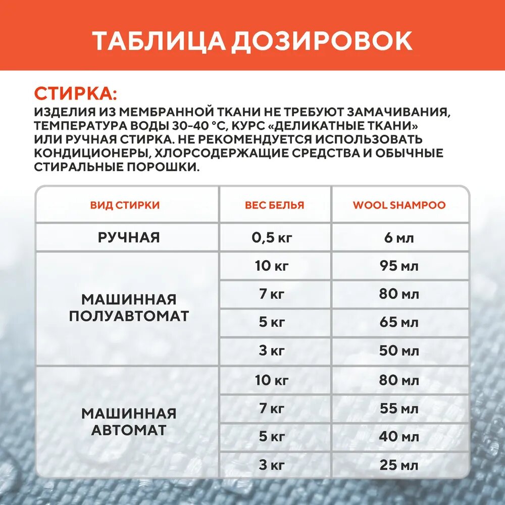Жидкое средство для стирки одежды с мембраной (спортивная, для активного отдыха), вул шампу, 800мл
