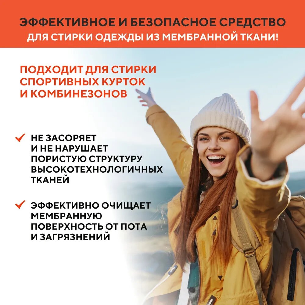 Жидкое средство для стирки одежды с мембраной (спортивная, для активного отдыха), вул шампу, мягкая упаковка, 1л