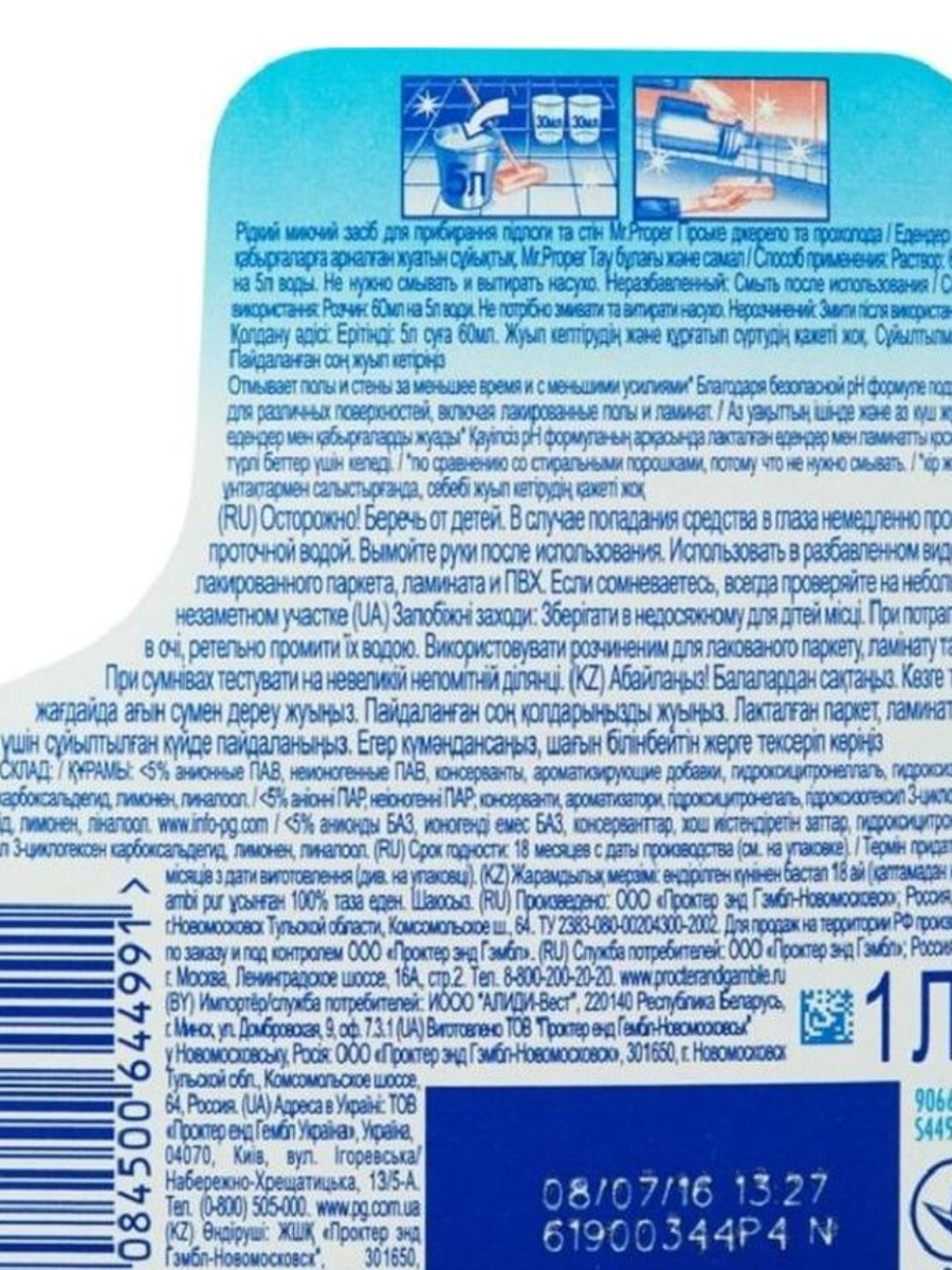 СохранитьСредство для мытья пола и стен 1 л, MR.PROPER (Мистер Пропер), "Горный ручей и прохлада", MP-81519421 интересное: