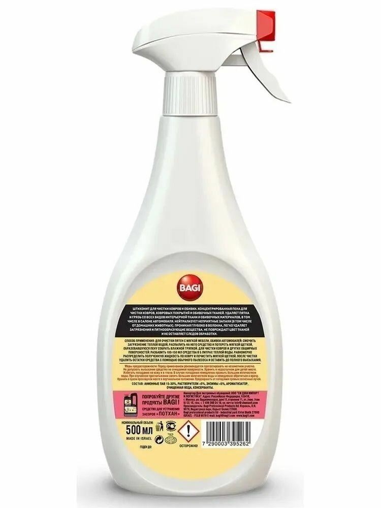 Купить Средство для чистки ковров и мягкой мебели 500 мл BAGI штихонит, распылитель, H-395262-N