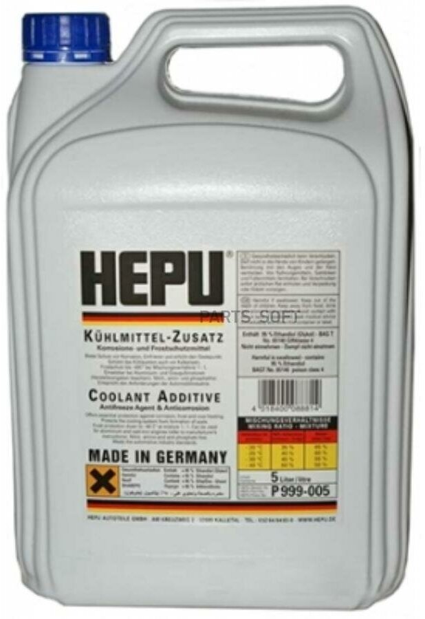 HEPU P999005 P999-005_антифриз! синий 5L концентрат 1:1 -40°C соответствует категории G11\