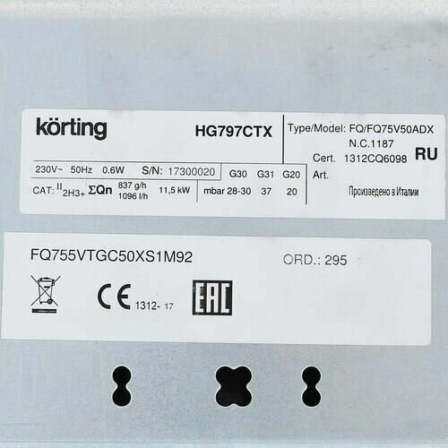 СохранитьВстраиваемая газовая панель KORTING HG 797 CTX интересное: