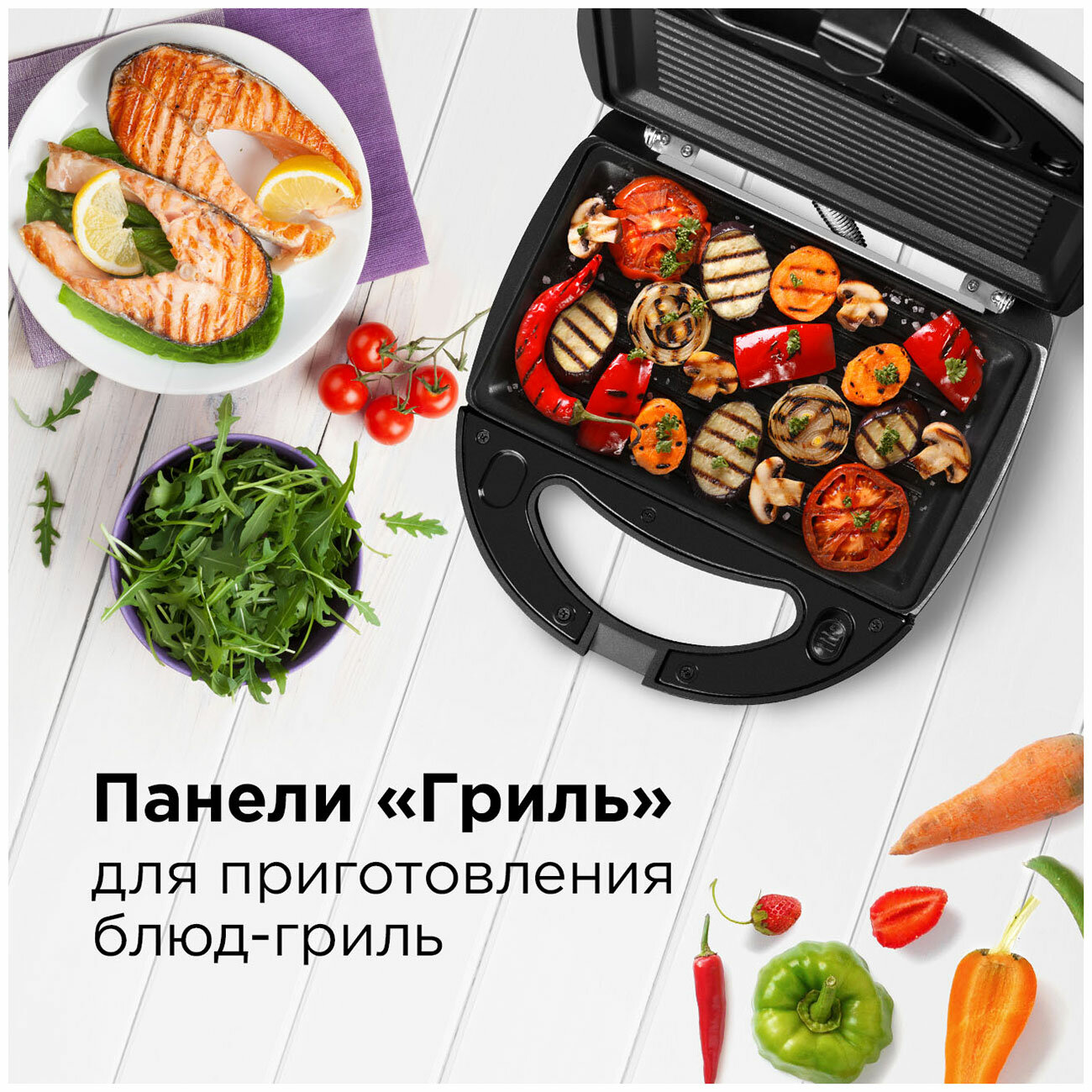 Очень много вариантов готовки:яичницы с омлетиками,овощи и мясо на гриле,бублики,вафли и т.д. |