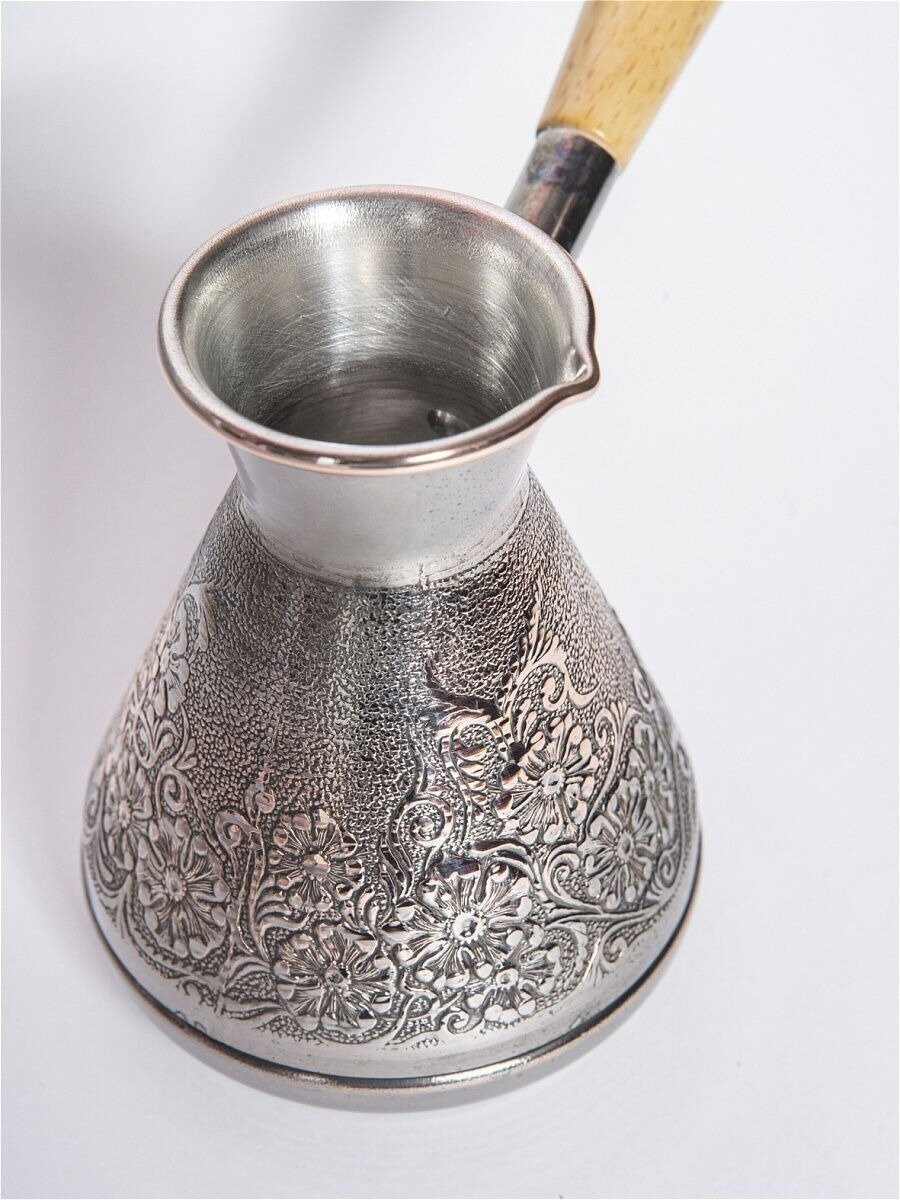 | Минусы: | Почему то производитель стесняется написать какой второй металл использован для внутреннего покрытия турки. Турка внутри белая, а как все знают, медь белая не бывает. |