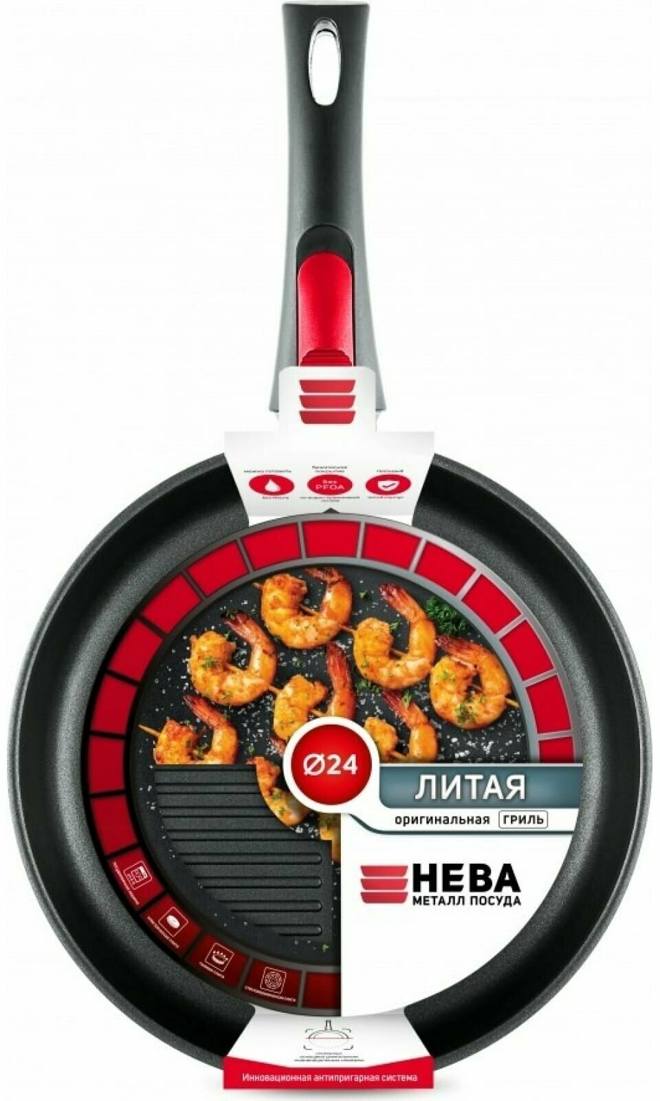 Сковорода-гриль Нева Металл Посуда НМП арт. 4424 со съемной ручкой, 24 см