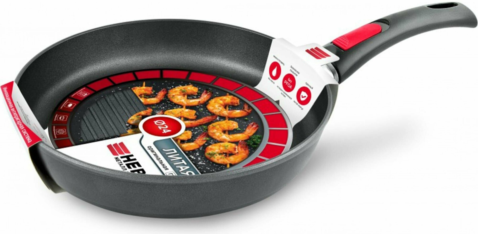 Сковорода-гриль НМП 4424 низкая 24 ПР Литая "Оригинальная" (сотейник) .