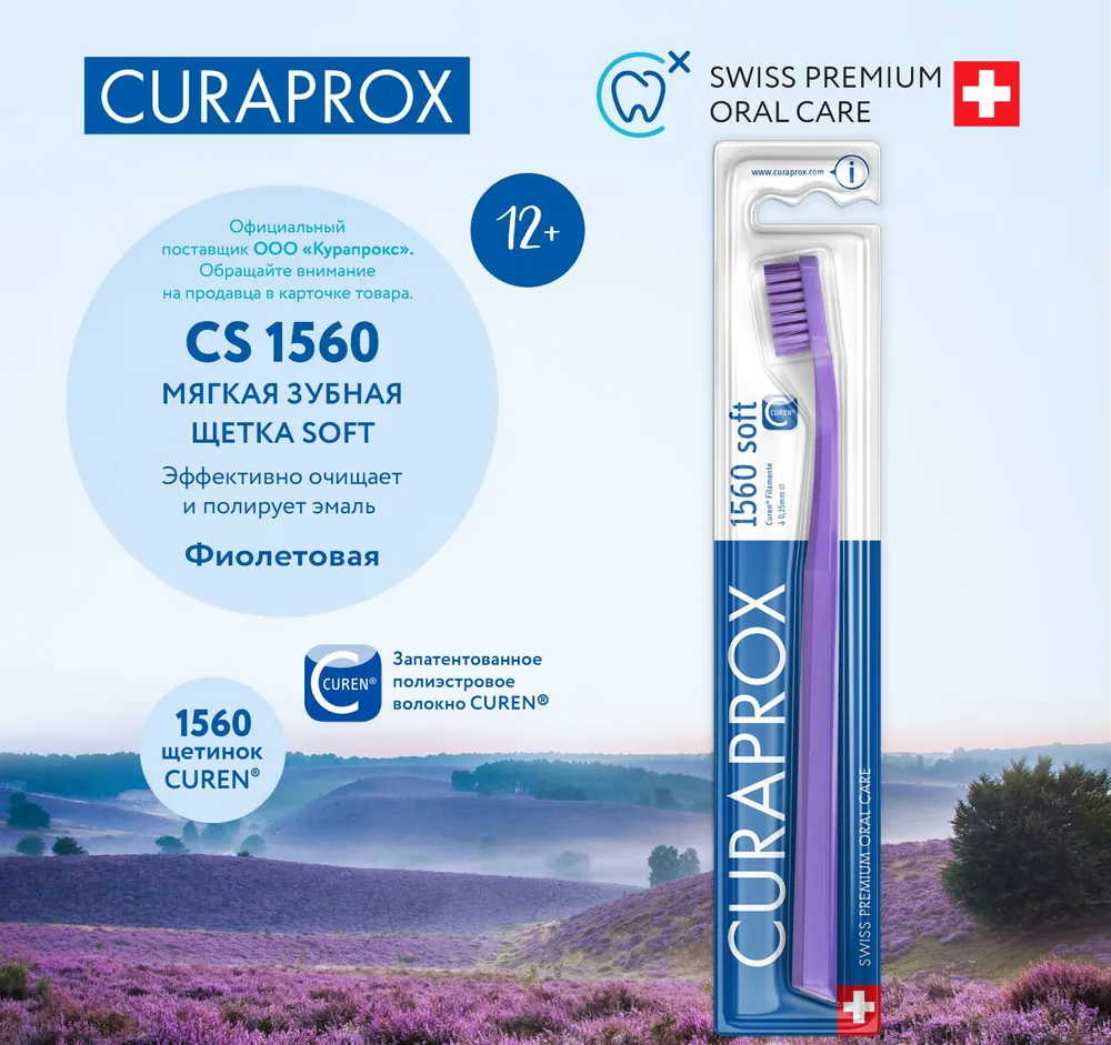 Зубная щетка Curaprox CS 1560 soft, фиолетовый, диаметр щетинок 0.15 мм