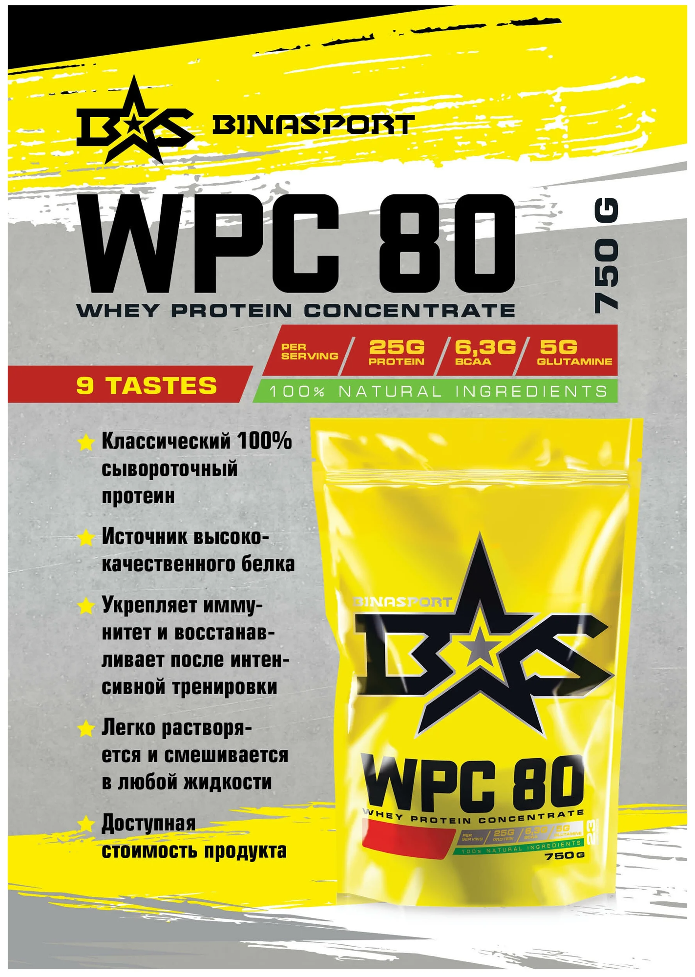 Сывороточный протеин Binasport WPC 80 "ВиПиСи 80" 750 г со вкусом малины