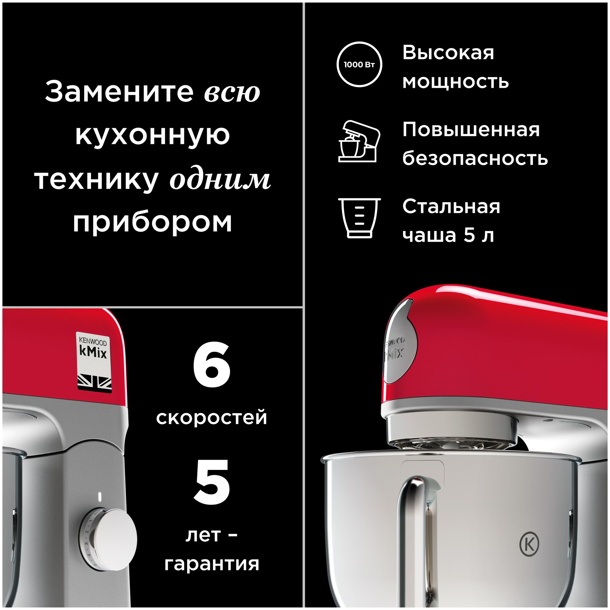 Кухонная машина Kenwood KMX750BK kMix мощность 1000 Вт емкость блендера 5 литра