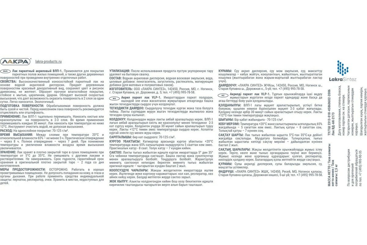 Лак паркетный ВЛП-1 Лакра Матовый 2,5кг интересное: