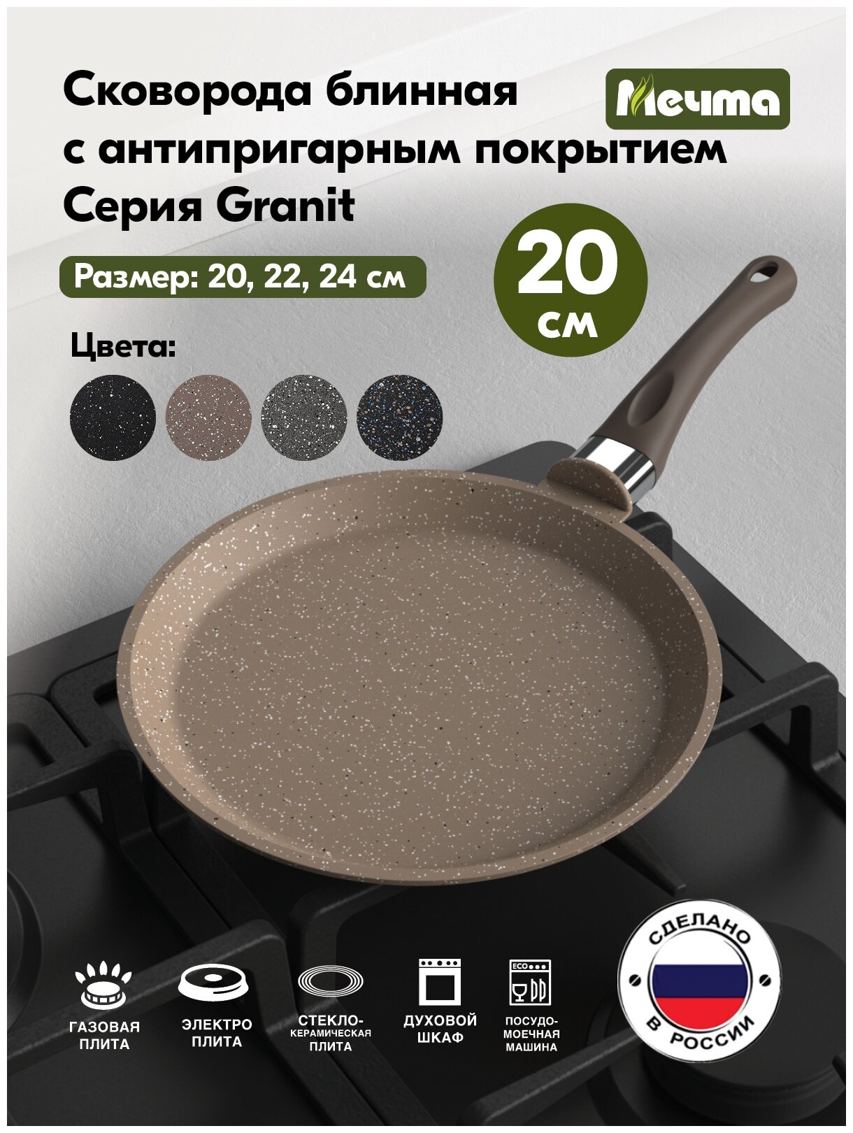 Сковорода блинная Мечта 20 см Гранит с антипригарным покрытием с несъемной ручкой, НЕ индукционная