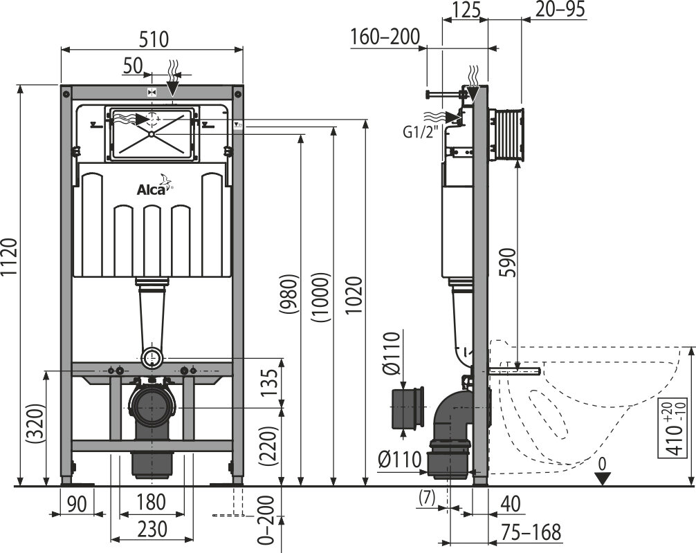Купить Комплект Унитаз подвесной Duravit D-code 45700900A1 безободковый + Система инсталляции для унитазов AlcaPlast Sadromodul AM101/1120-001 с кнопкой и шумоизоляцией