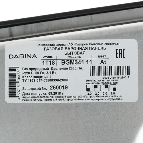 Газовая варочная панель Дарина 1T18 BGM341 11 At
