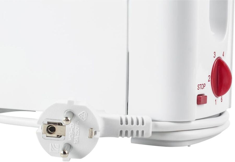 | Плюсы: | Приятный дизайн, шесть степеней прожарки, съемный поддон для крошек, просто включается, есть отсек для шнура. |
